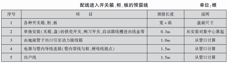三、盘、箱、柜的外部进出线预留长度按下表计算。