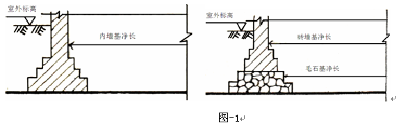 ② 内墙墙基按内墙基净长计算。(见图-1)
