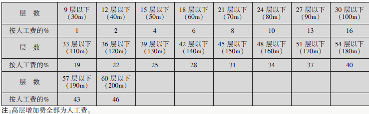 2. 高层建筑增加费(指高度在6 层或20m 以上的工业与民用建筑)按下表计算: