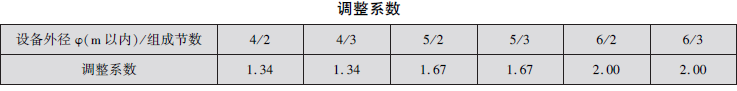 五、煤气发生设备分节容器外壳组焊时如所焊设备外径大于3m,则以3m外径及组成节数(3/2、3/3)的定额为基础,按下表乘以调整系数。