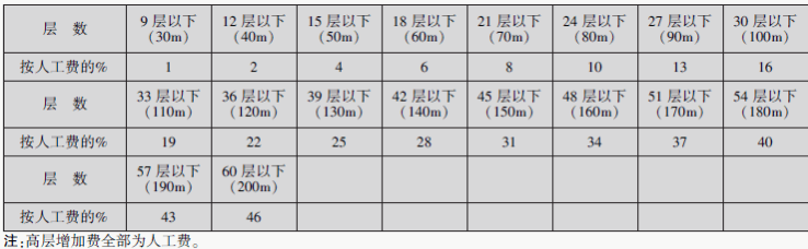 3. 操作高度增加费:安装高度按距离楼面或地面5m 考虑的,超出部分工程量按定额人工费乘以下表系数: